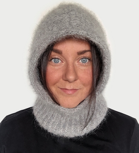 머리에 딱 붙지 않는 스타일로 심플하게 연출할 수 있는 대바늘 니트 바라클라바입니다.