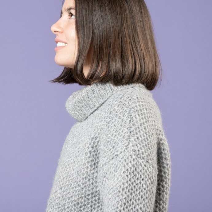 허니콤 벌집무늬의 텍스쳐가 돋보이는 대바늘 터틀넥 스웨터입니다.